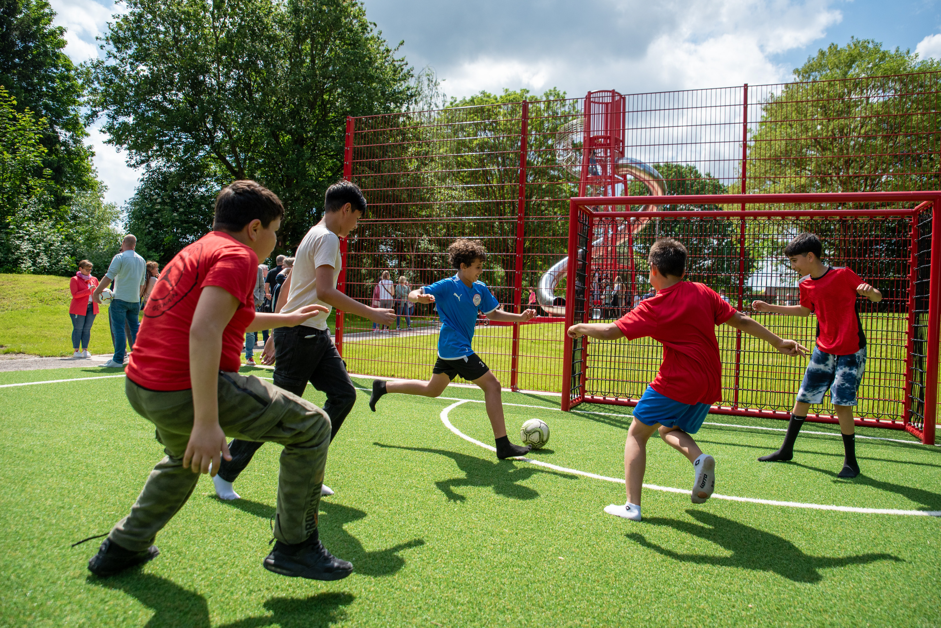 Kicken und klettern auf Kohle-Spuren: Umgestaltete Spielplätze in Huckarde eröffnet