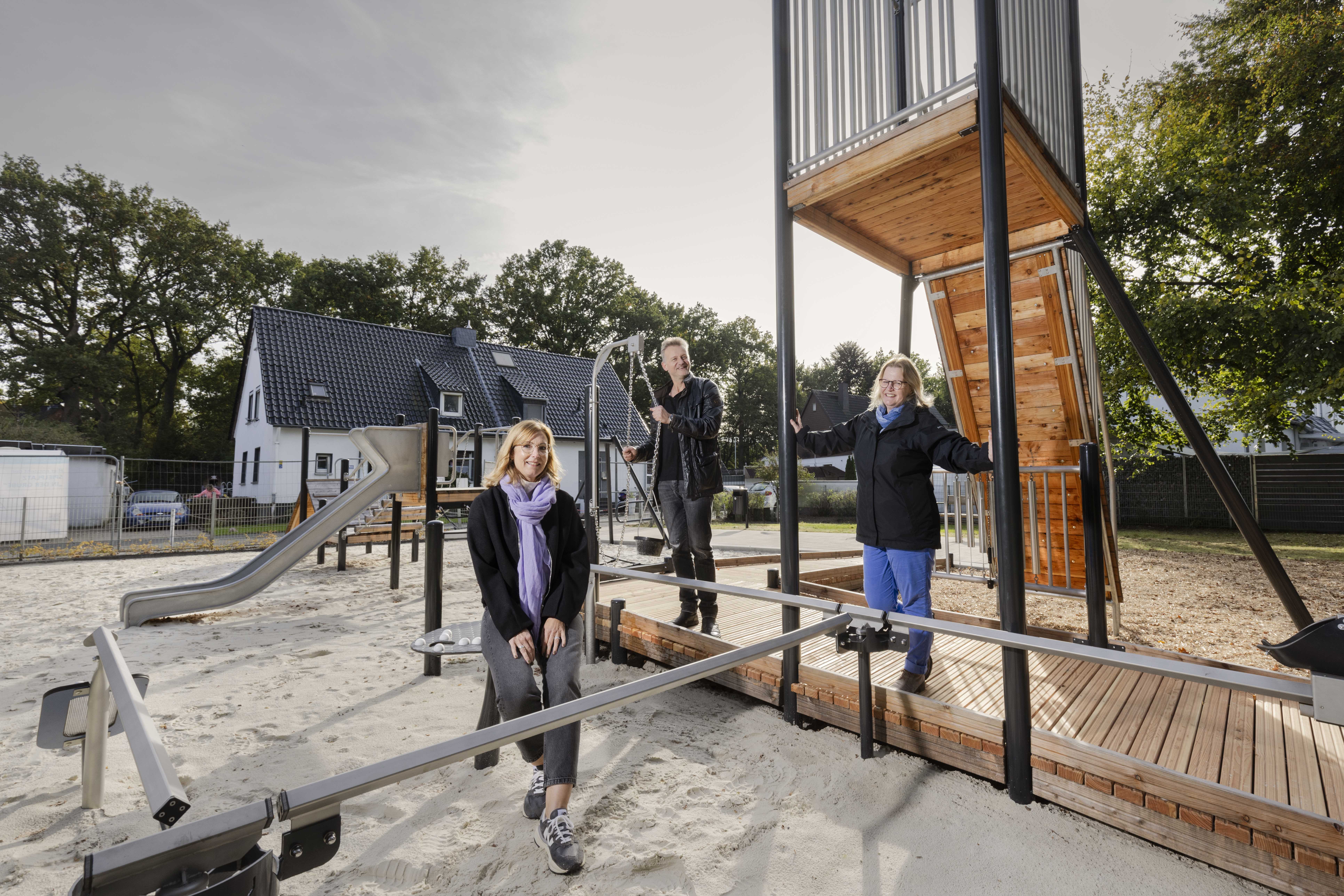 Bei der Ausgestaltung der Spielplätze durften Grund- und Gesamtschüler*innen mitreden. Auch die Ortspolitik hat ihre Ideen und Anregungen eingebracht. Die barrierefreie Erreichbarkeit und gemeinschaftliche Nutzung der Spielgeräte spielen eine große Rolle bei der Planung. Und so gibt es auf allen Spielplätzen Angebote, die je nach Alter, Entwicklungsstand sowie kognitiven und motorischen Fähigkeiten nutzbar sind.