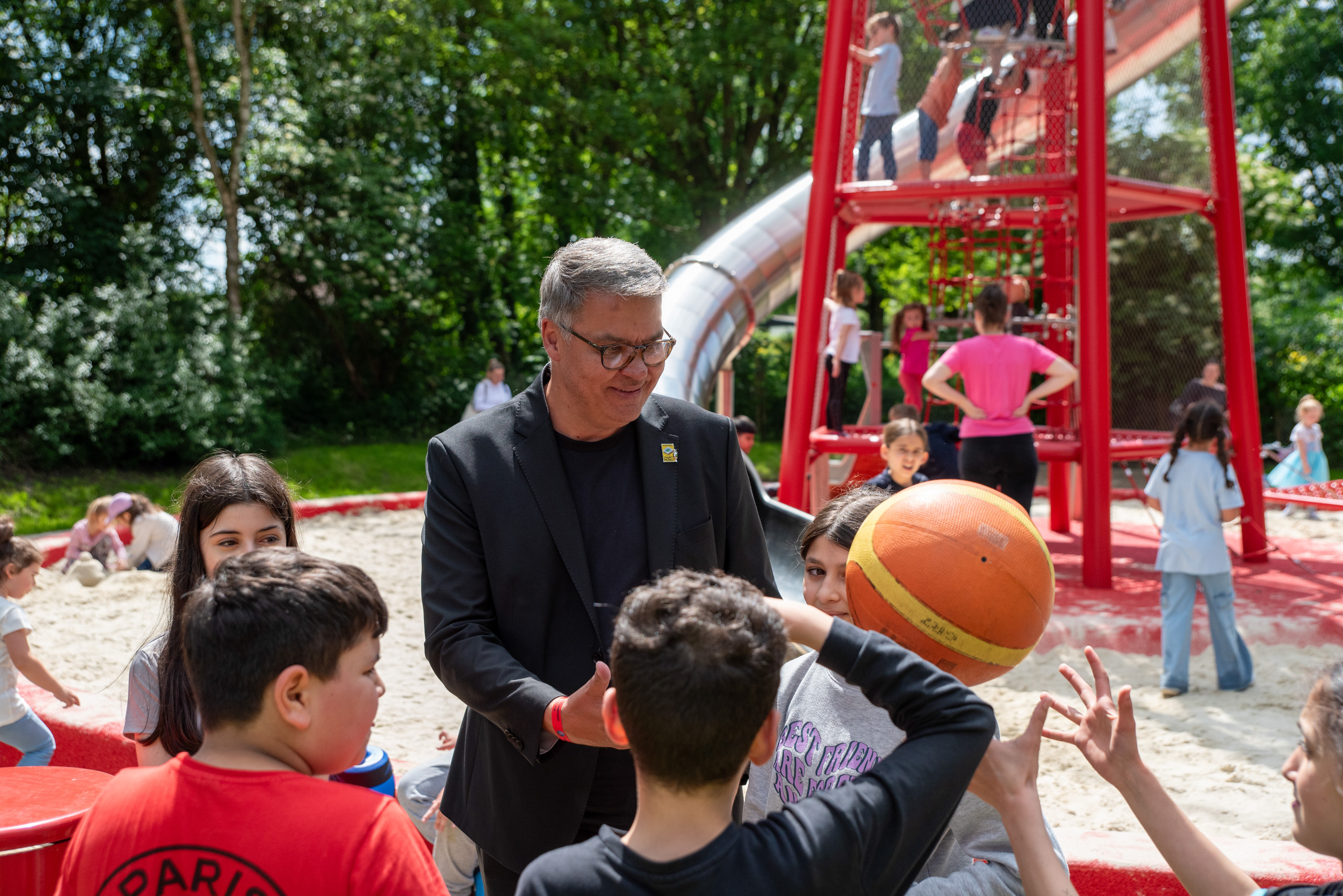 Oberbürgermeister Thomas Westphal kam zur Eröffnungsfeier für die Anwohner*innen, die umliegenden Schulen und Kindergärten.