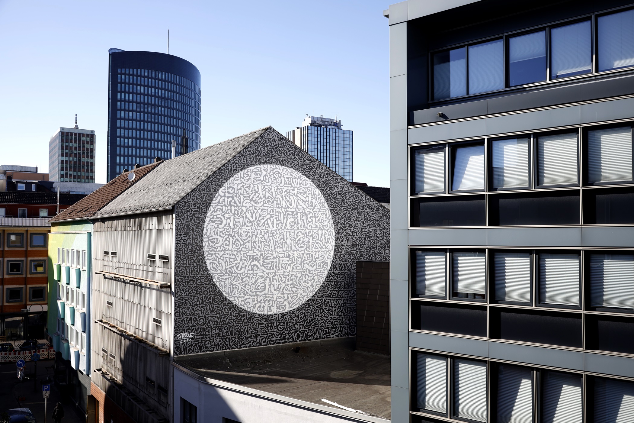 2020 verewigte sich der Künstler Parole mit seiner an orientalische Ornamente erinnernden Wandzeichnung in der Gerberstraße 3 (s. Bilderstrecke oben). „Der facettenreiche belgische Künstler verdreht, verzerrt und formt Schriften, bis die Buchstaben nahezu unleserlich sind und damit ihre Bedeutung als Codes für intersubjektive Kommunikation aufgeben“, berichtet Christian Weyers, Leiter von