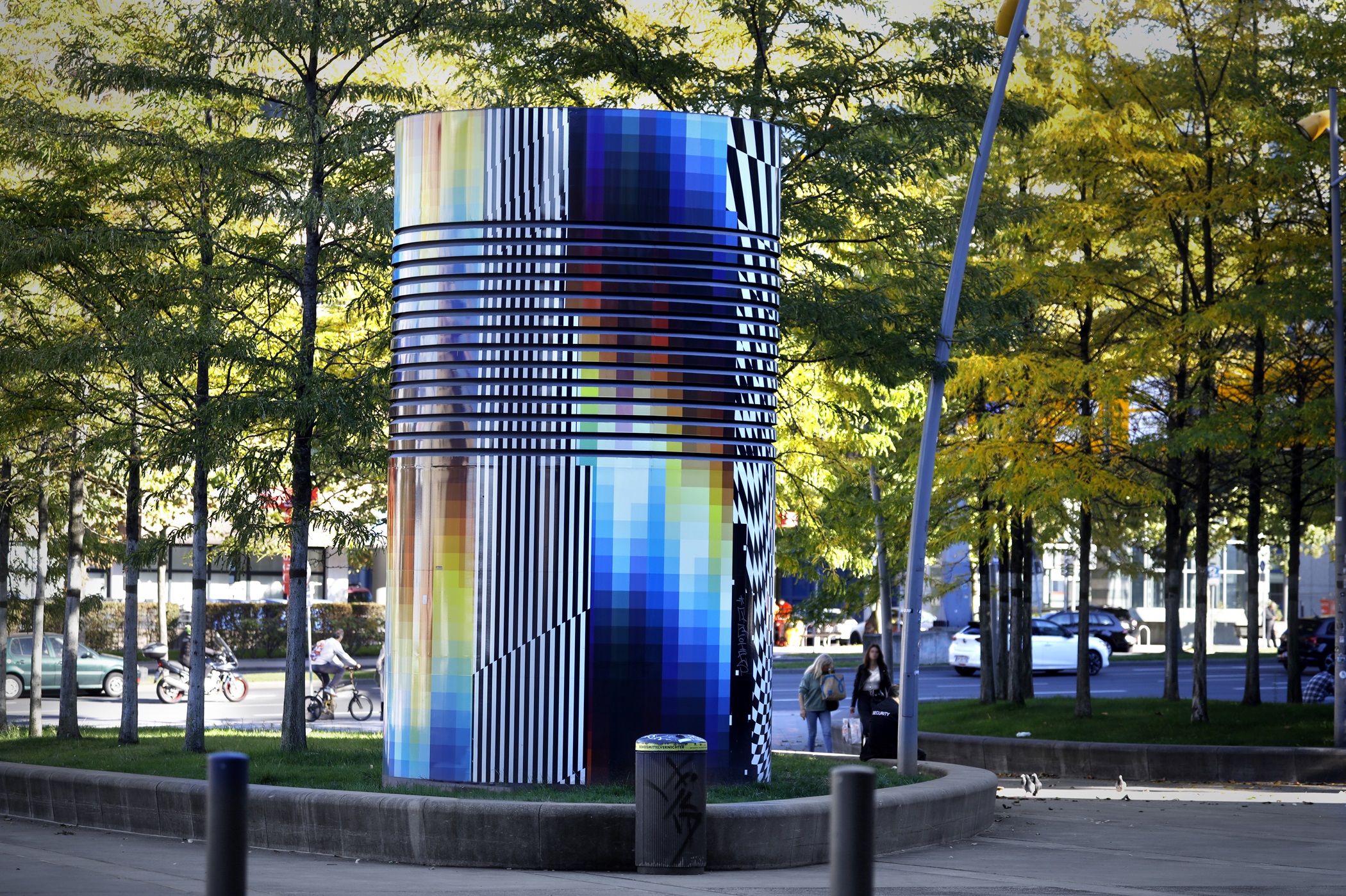 Am Brückcenter sucht ein pixeliger Geist im Pacman-Stil die Fassade heim, während weiter nördlich auf der Brückstraße, hinter dem Orchesterzentrum, in großen Lettern die Worte „Another Weekend“ in Erscheinung treten. Letztere gehören zu einer dreiteiligen Serie von Stefan Marx, die 2019 im Rahmen der Ausstellung „Ruhr Ding: Territorien“ entstand. Das Werk ist eine Referenz an einen Song des amerikanischen Singer-Songwriters Ariel Pink. Eine Hymne auf ein hedonistisches Wochenende? Mitnichten. Eine tiefmelancholische Ballade.