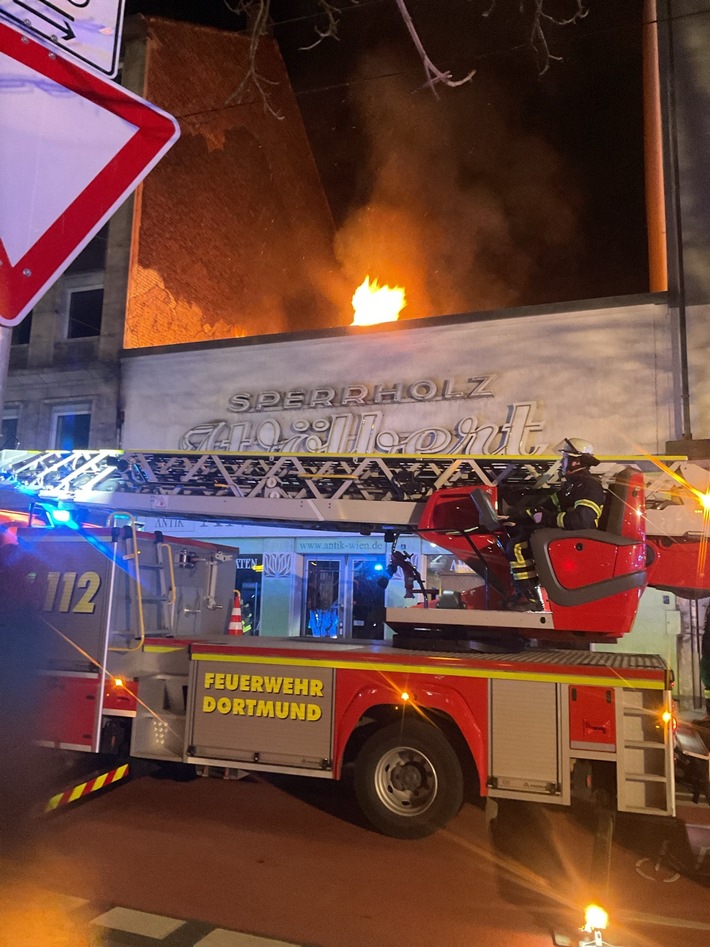 Um etwa 23:20 Uhr wurde die Einsatzleitstelle der Feuerwehr Dortmund über ein Feuer in einem Gebäude am Schwanenwall informiert. Bei Eintreffen der ersten Kräfte waren Flammen auf dem Dach eines zweistöckigen Einzelhandelsgeschäftes zu erkennen. Die Feuerwehr leitete unmittelbar die Brandbekämpfung über eine Drehleiter ein. Vorsorglich wurden die Bewohner des Nachbargebäudes evakuiert und in einem bereitgestellten Bus untergebracht.