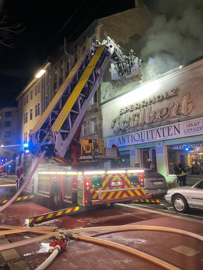 Ein Feuer in einem zweigeschossigen Einzelhandelsgeschäft in der Dortmunder Innenstadt beschäftigte die Feuerwehr Dortmund in der Nacht von Sonntag auf Montag. Personen kamen nicht zu schaden.