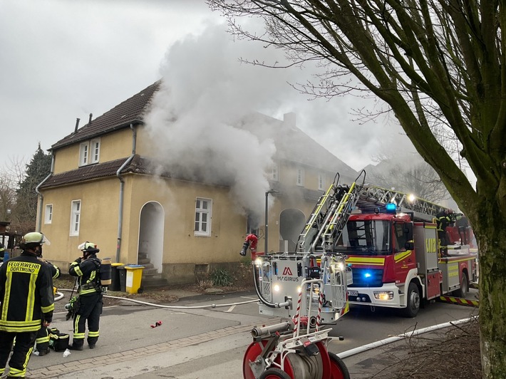 Gegen 9:40 Uhr wurde die Feuerwehr Dortmund in die Bogenstraße nach Dortmund-Derne alarmiert. Dort wurde der Einsatzleitstelle ein Brand in einem Reihenmittelhaus gemeldet. Bei Eintreffen der ersten Kräfte von Feuerwehr und Rettungsdienst war bereits die gesamte Straße verraucht, und die Flammen schlugen aus einem Fenster im Erdgeschoss. Ein Mann war vor dem Gebäude und hatte Rauchgase eingeatmet. Dieser berichtete, dass sich noch seine Mutter in der Brandwohnung befindet. Die Feuerwehr ging direkt mit drei Trupps unter Atemschutz zur Brandbekämpfung und Menschenrettung in das Gebäude vor, doch für die Frau kam jede Hilfe zu spät. Sie verstarb noch an der Einsatzstelle.
